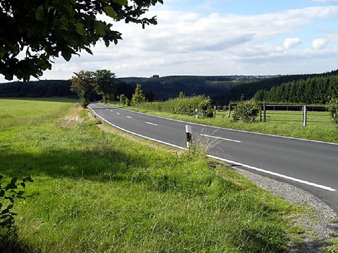 Leider bin ich noch nicht komplett bis zu Ortszentrum Blankenheim vorgedrungen und beschreibe euch einen Teil der Anfahrt. Das hier gleich mehrere Bundesstraßen und auch die A1 endet, halte ich für Radsportler als ein extremes Ärgernis, nein ich finde es gefährlich. Es fühlen sich hier auf den Landstraßen noch zahlreiche Autofahrer wie auf der Autobahn. Meine Empfehlung ist in Tondorf Richtung Blankenheim zu fahren und die nächste Möglichkeit links dem Radweg folgen. Danach für ca. 1,5 Kilometer alles vergessen was Radfahren auszeichnet bis der Radweg gesichtet wird. Dieser Radweg hat eine Kartenzuordnung (mit der Bezeichnung R9 gekennzeichnet) und ist sehr gut ausgebaut und natürlich 1a beschildert und kann permanent im gutem Tempo befahren werden, ab sofort kann landschaftlich und verkehrstechnisch nichts mehr schief gehen. Die Höhenangaben auf meinem Tacho lagen später bereits weit über 550 Meter, für Eifelverhältnisse eine nette Höhenstraße. Nach ca. 15 Kilometer wird dann Rheinland-Pfalz erreicht und die Tour kann an der Ahr bis zur Erschöpfung kombiniert werden.